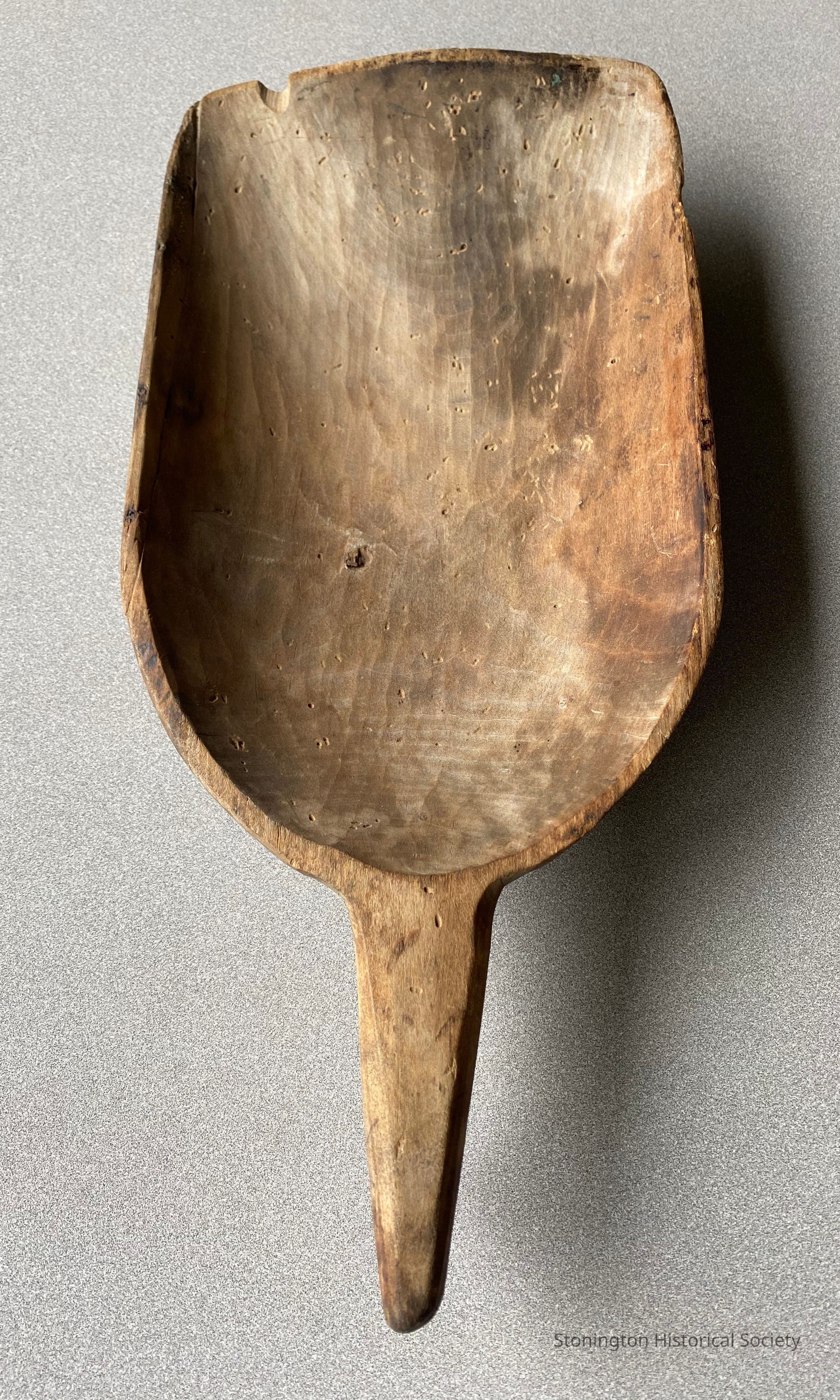 Grain scoop, 17.25" long x 7.75" wide with handle, handmade from 1 solid piece of pine, from Stone Acres Farm.