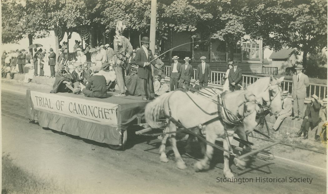 "Trial of Canonchet" on horse drawn wagon on Water Street