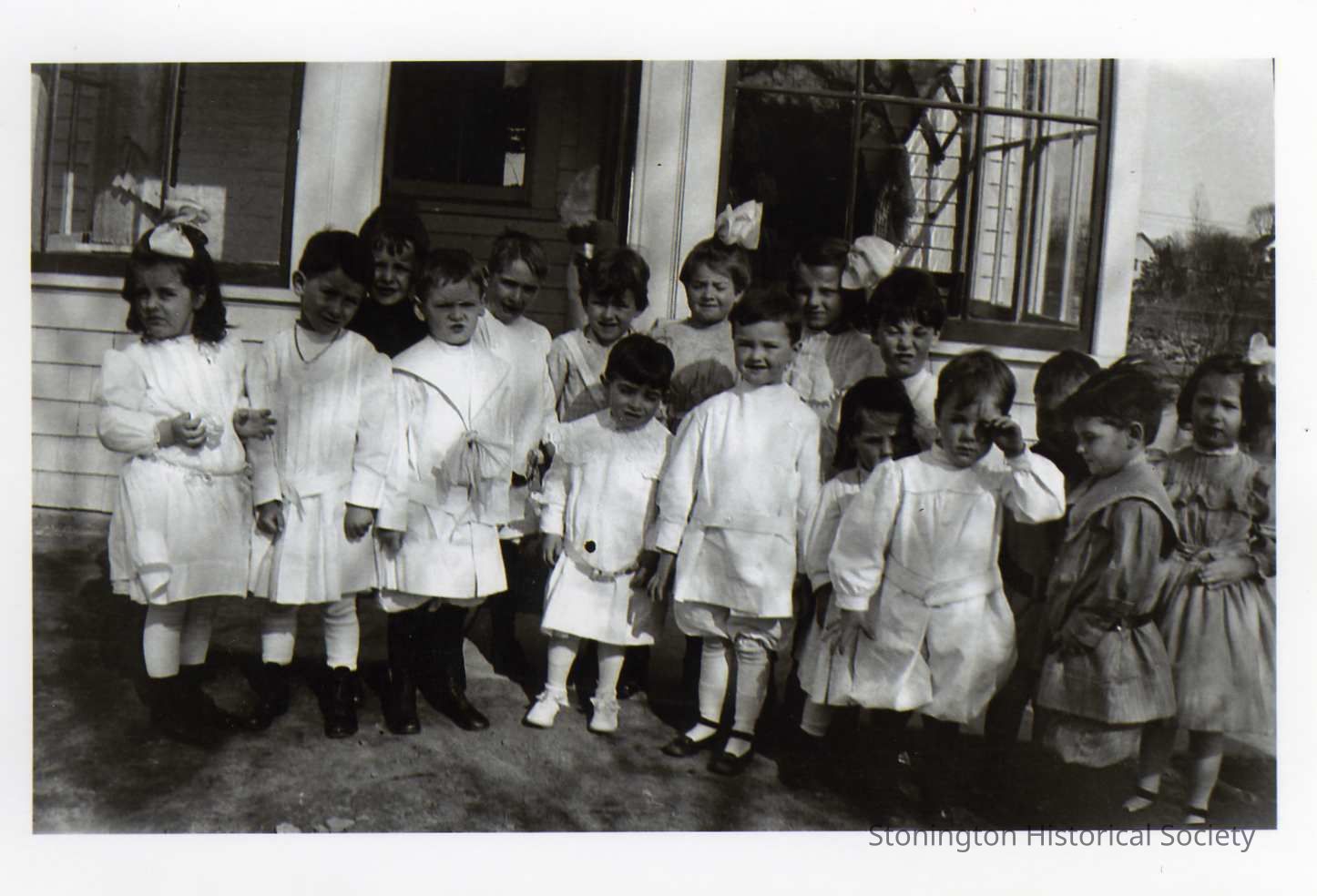 Group photograph of children outside - may be a school? Robert P. Anderson is standing in the front middle with black shoes.