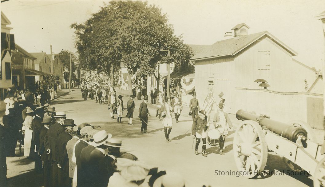 Cannon of 1814 on Elm Street showing barn on Elm Street opposite Cliff Street