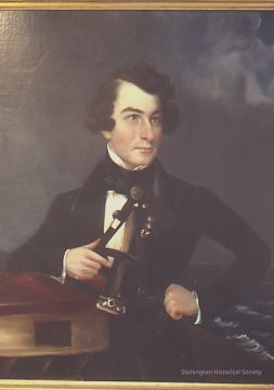 Oil portrait of Otis Pendleton (1816 - 1868), unsigned. He is holding a sextant.