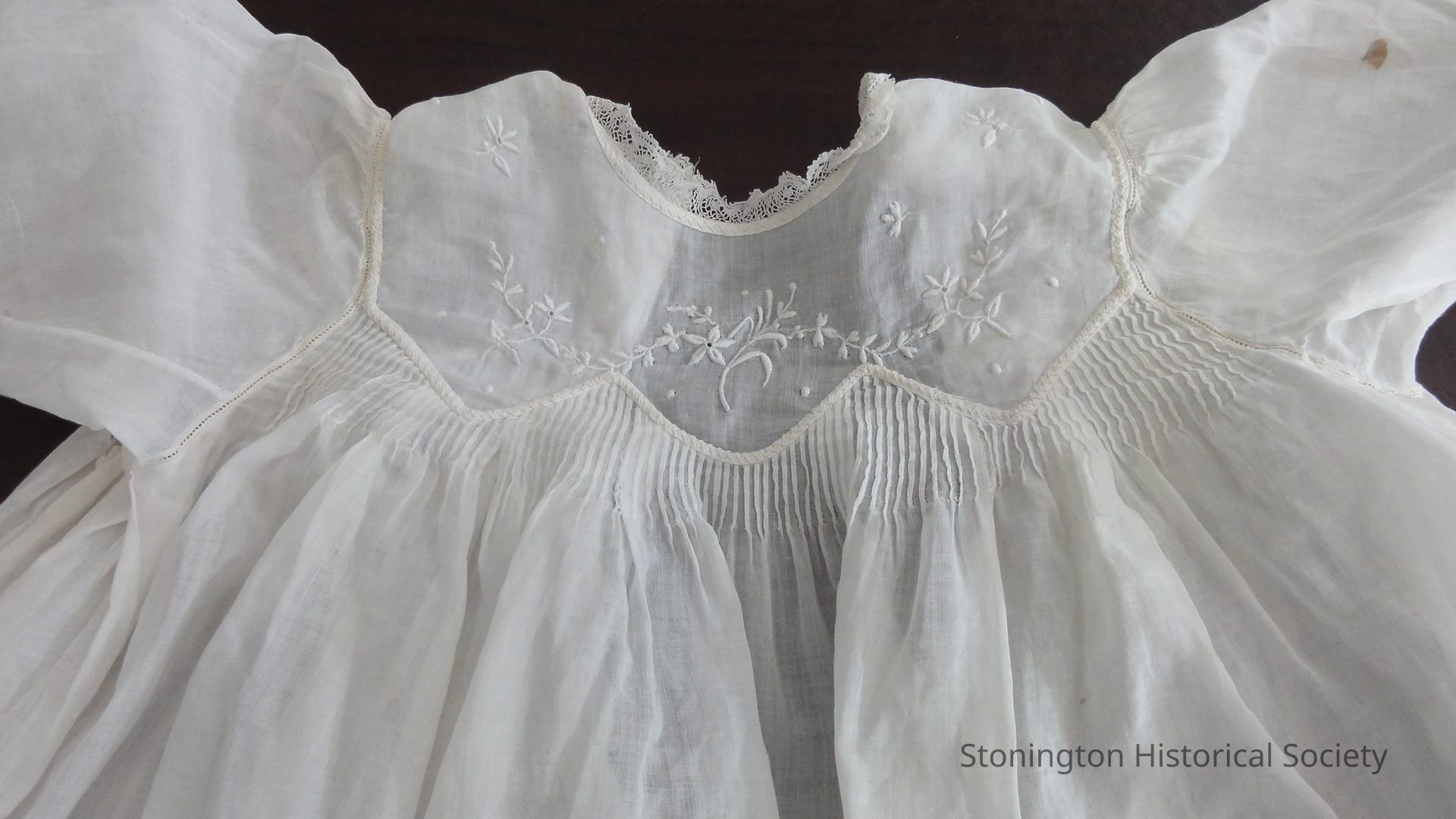 whitework encircles lower edge of dress and yokeCollection