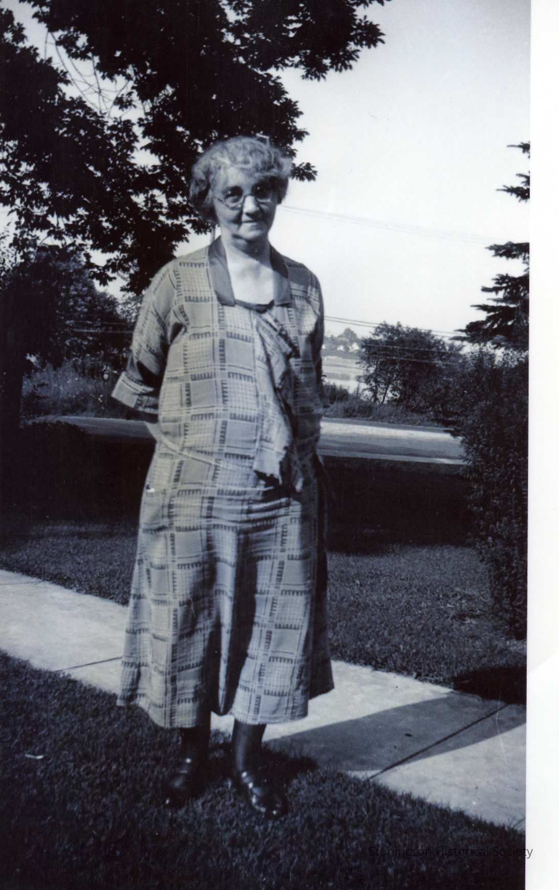 Photograph of Kate Anderson standing outside at the family home in Noank, CT. Negative is included behind picture.