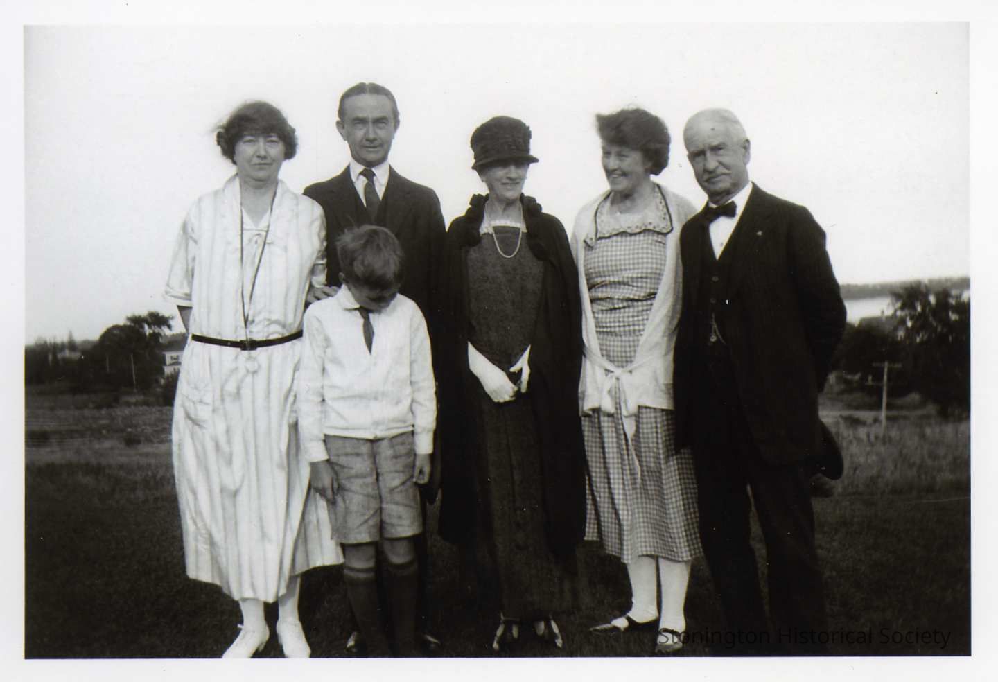 Anderson family group photograph. From left to right: Emma V., Arthur, William or Ashby, Anderson grandmother, unidentified man and woman on the far right, probably other Anderson relations. There are two copies of this photograph.