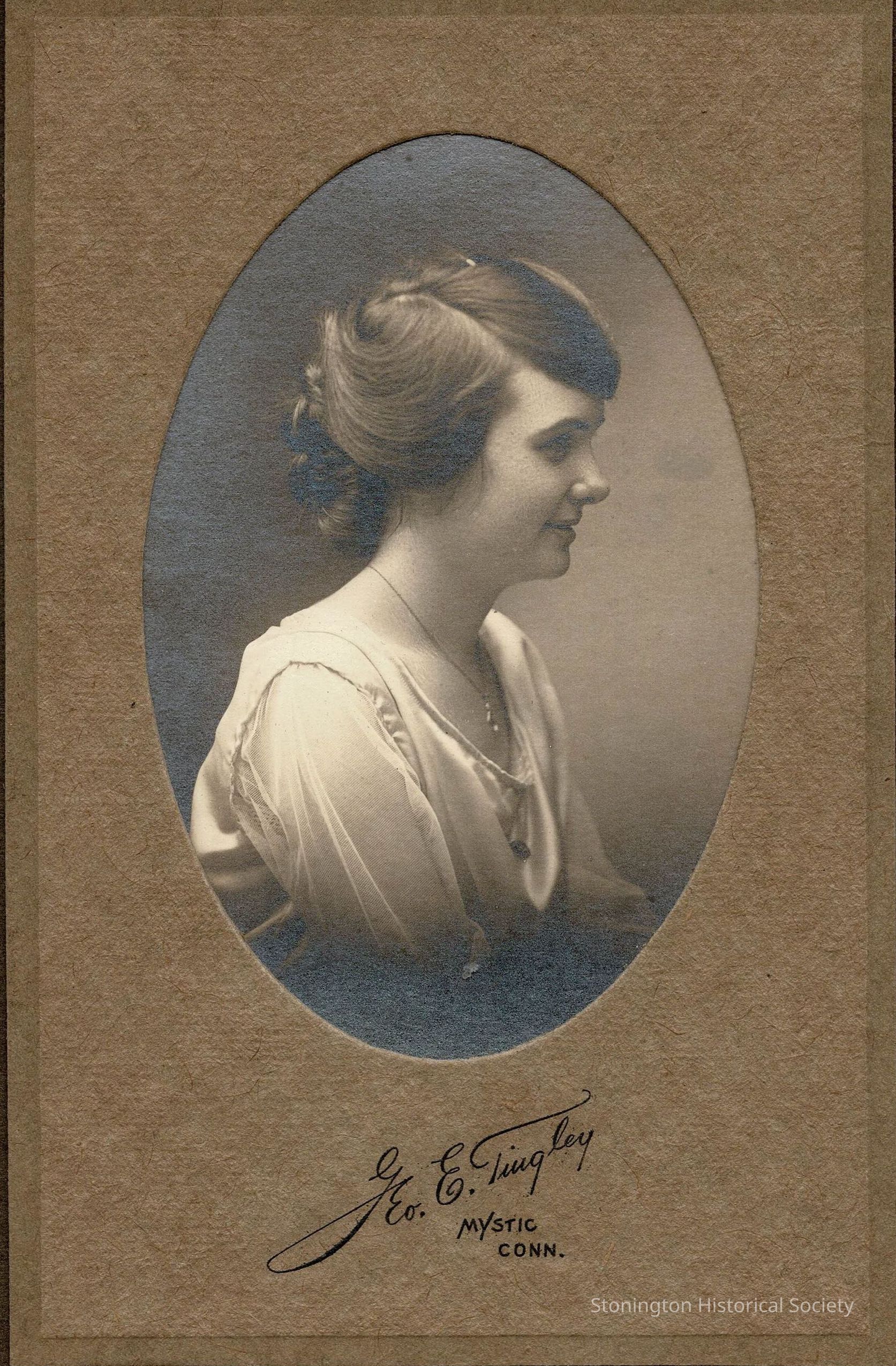 Lucy S. Whitford was born in Stonington March 20, 1901 to Lucy Stanton and ____ Whitford. She grew up in Old Mystic on Lantern Hill Road with her mother, grandmother, and older brother, Everard. Lucy’s mother supported her family by working as a farmer. She graduated from Stonington High School in 1919, and then attended Connecticut College, graduating in 1923. In December, Lucy married Alfred Heaton of New London. Alfred was the construction superintendent for the Merritt Chapman Scott Corporation in Branford. Once married, they settled in New London and had two children: Carolyn and Charles “Peter”. Later, Lucy was the chairman of the New London Chapter of the American Red Cross. She died in 1966, and is buried in Elm Grove Cemetery in Mystic.Made/Created