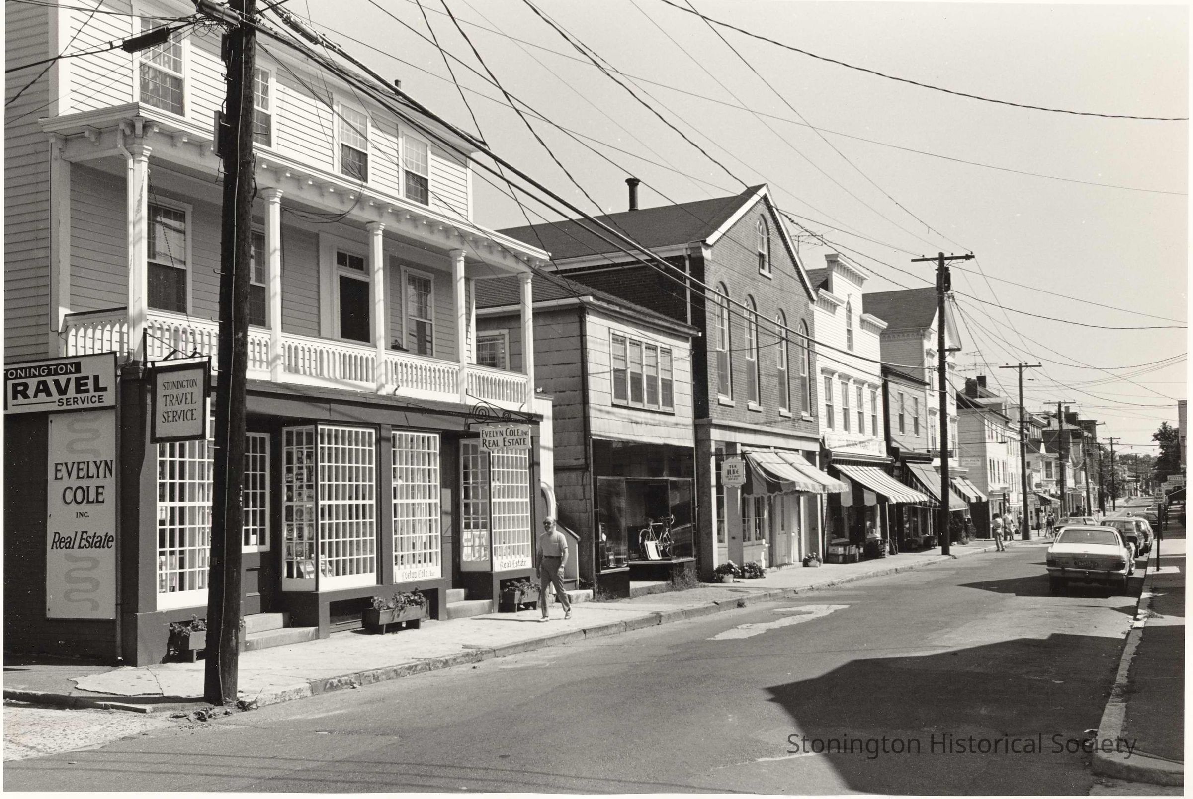 Water Street looking south from Pearl Street showing Evelyn Cole Inc. Real Estate and other store fronts on left.