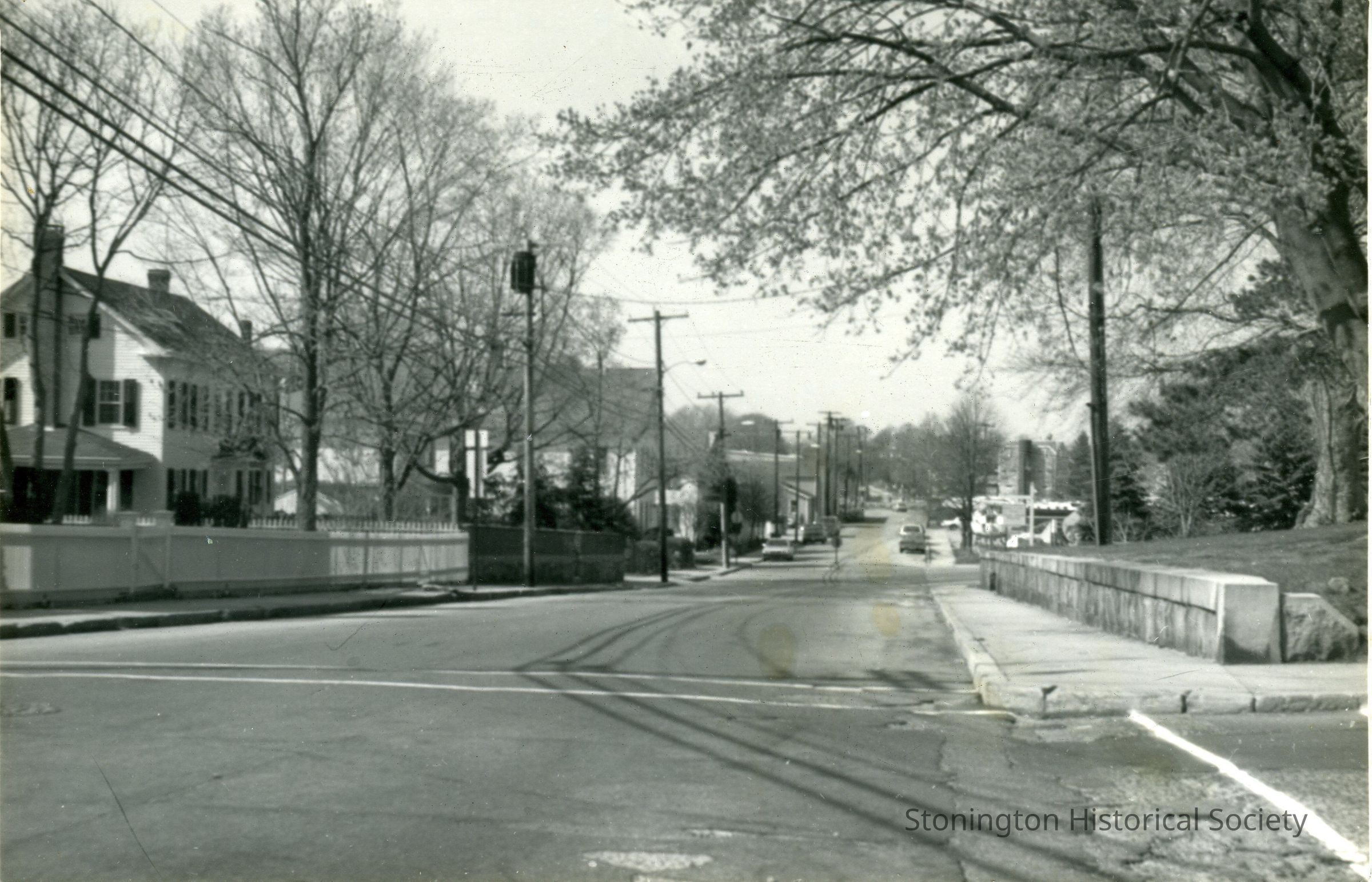 Looking north on Water Street, corner of Broad Street towards viaduct, Stonington CTCollection