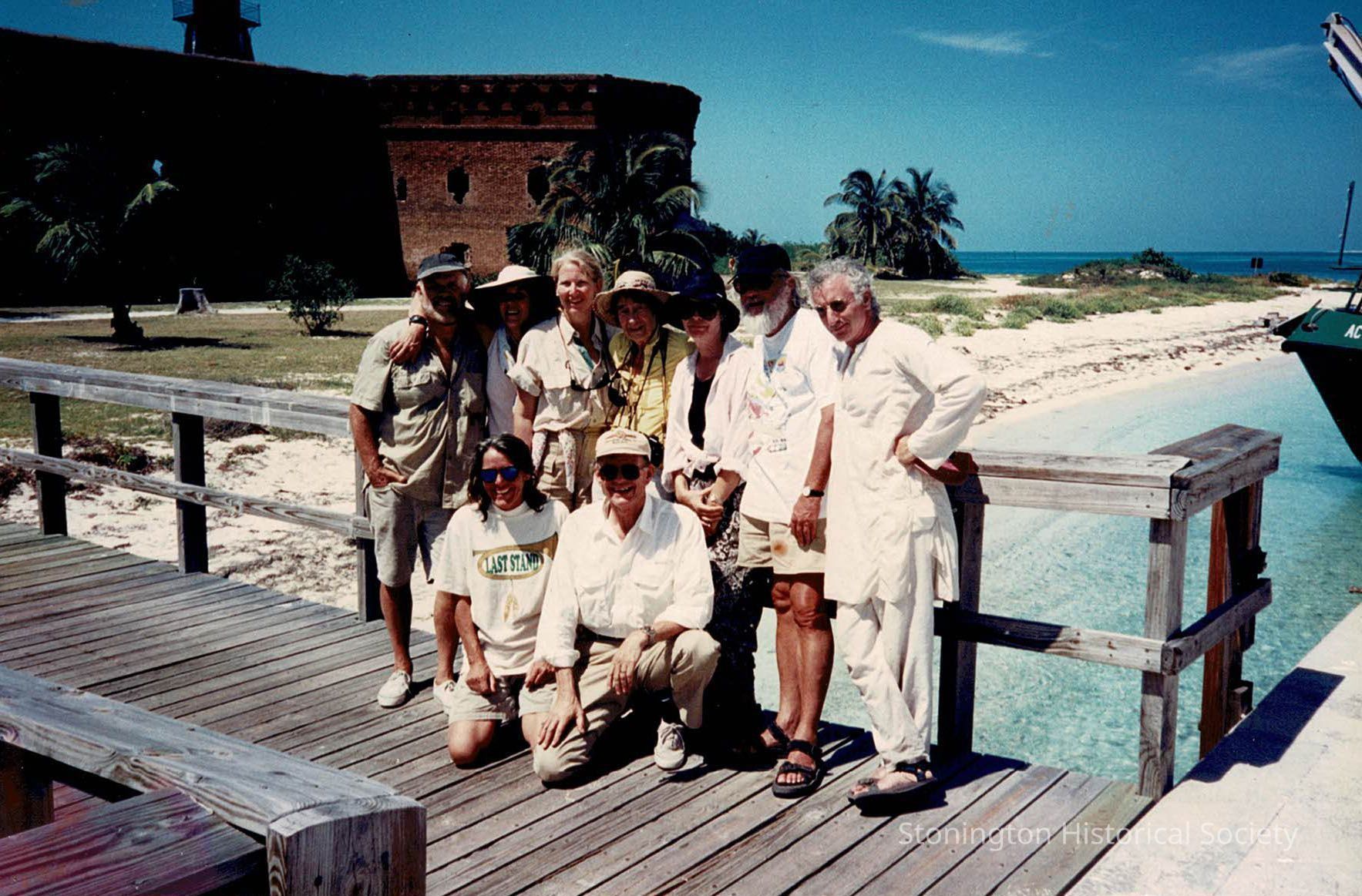 Group photograph of Rollie and friends at Fort Jefferson in Florida, April 1996. The back reads: