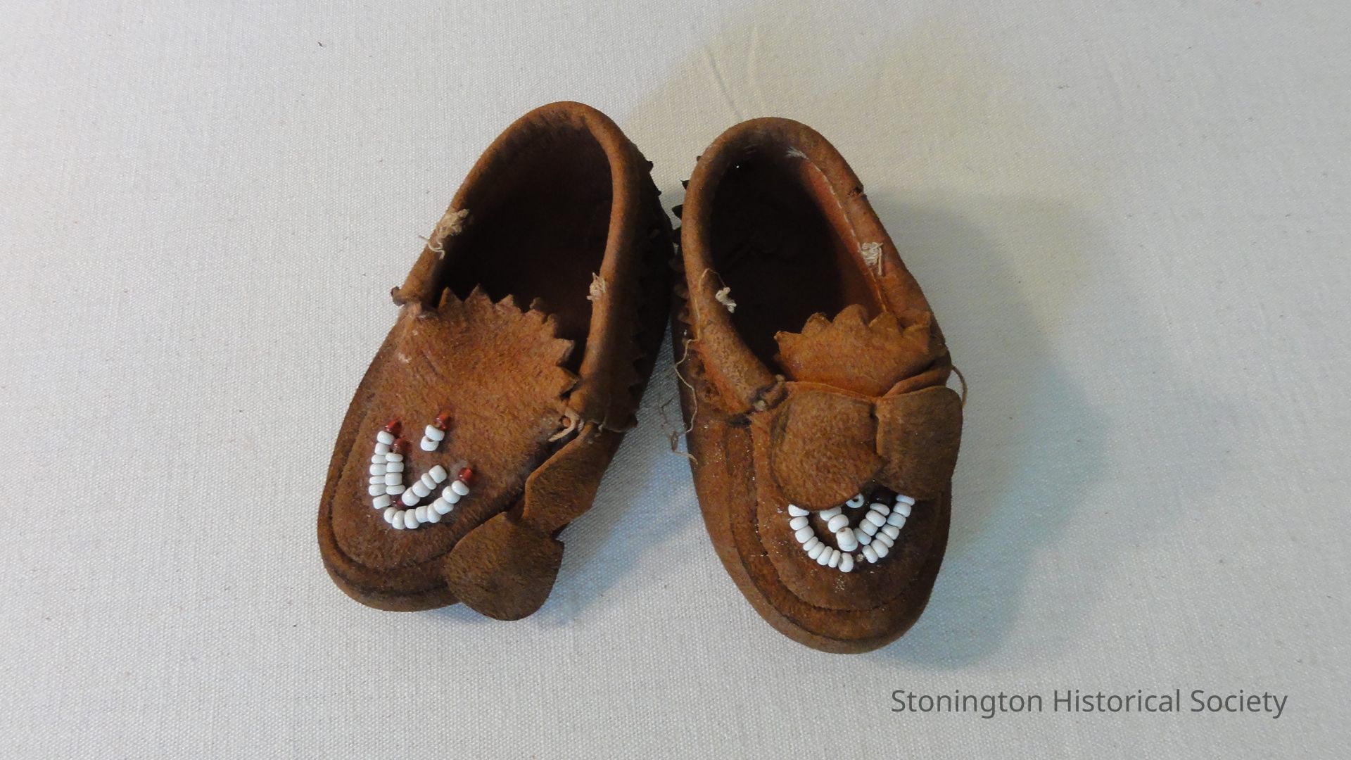 Child's Moccasin brown suede with white bead work handstitched sole 4 inches long