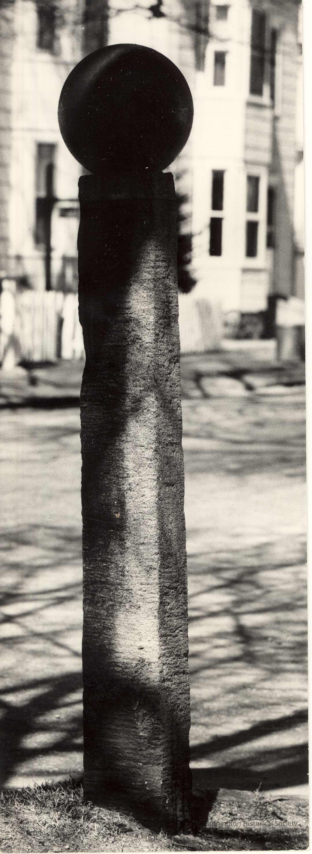 Granite pillar with cannon ball from 1812. Apparently called a "carcass" from 1814