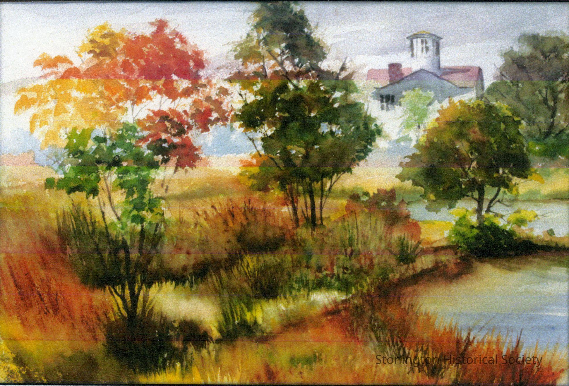 Watercolor landscape painting of Palmer House from "mitten" cove, donated by Eliot Porter in 1998Made/Created