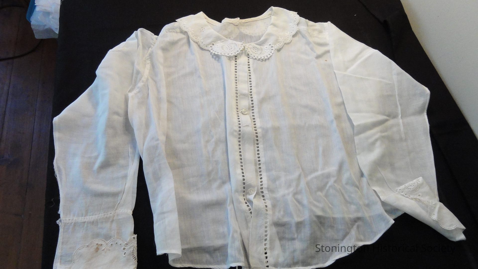 lower edge of back center is gathered with cloth tape, one with knot 24 inches long and the other 19 inches longCollection