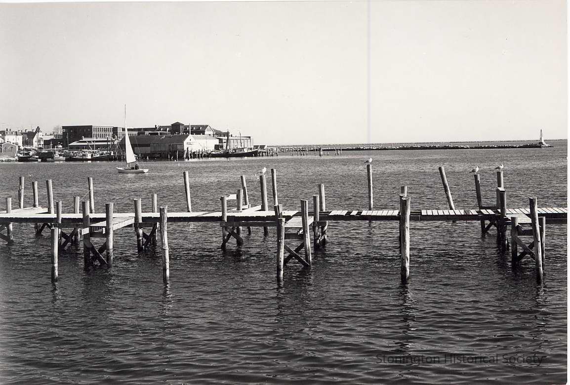 Harbor showing empty docks and breakwater and Atwoods/Monsanto in background.