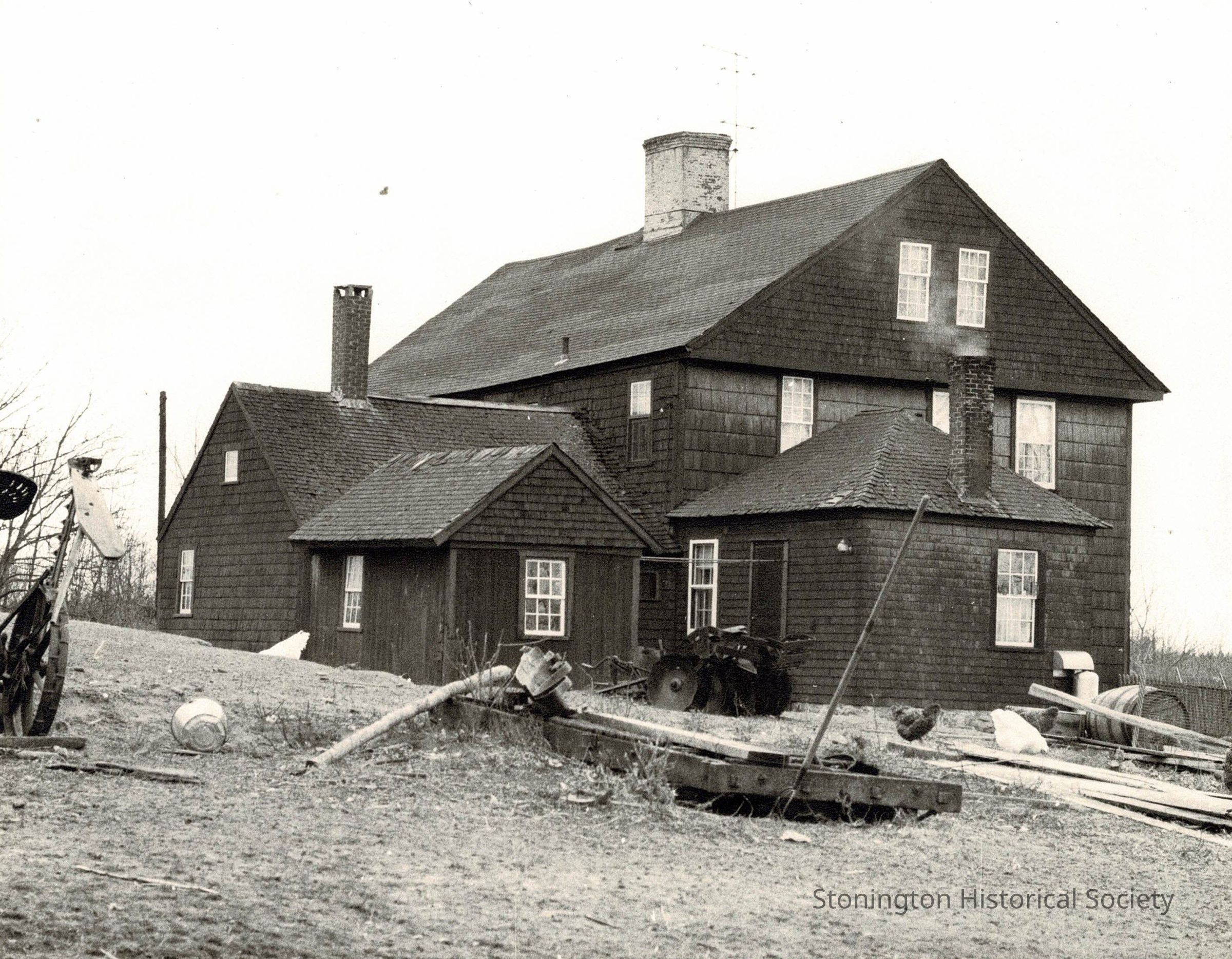 A black and white photograph of the Davis Homestead, or Stanton Davis homestead, as taken by Jim Boylan and Betsy Wade in 2006. This shows the old farmhouse, originally established in 1690, from the north west.Made/Created