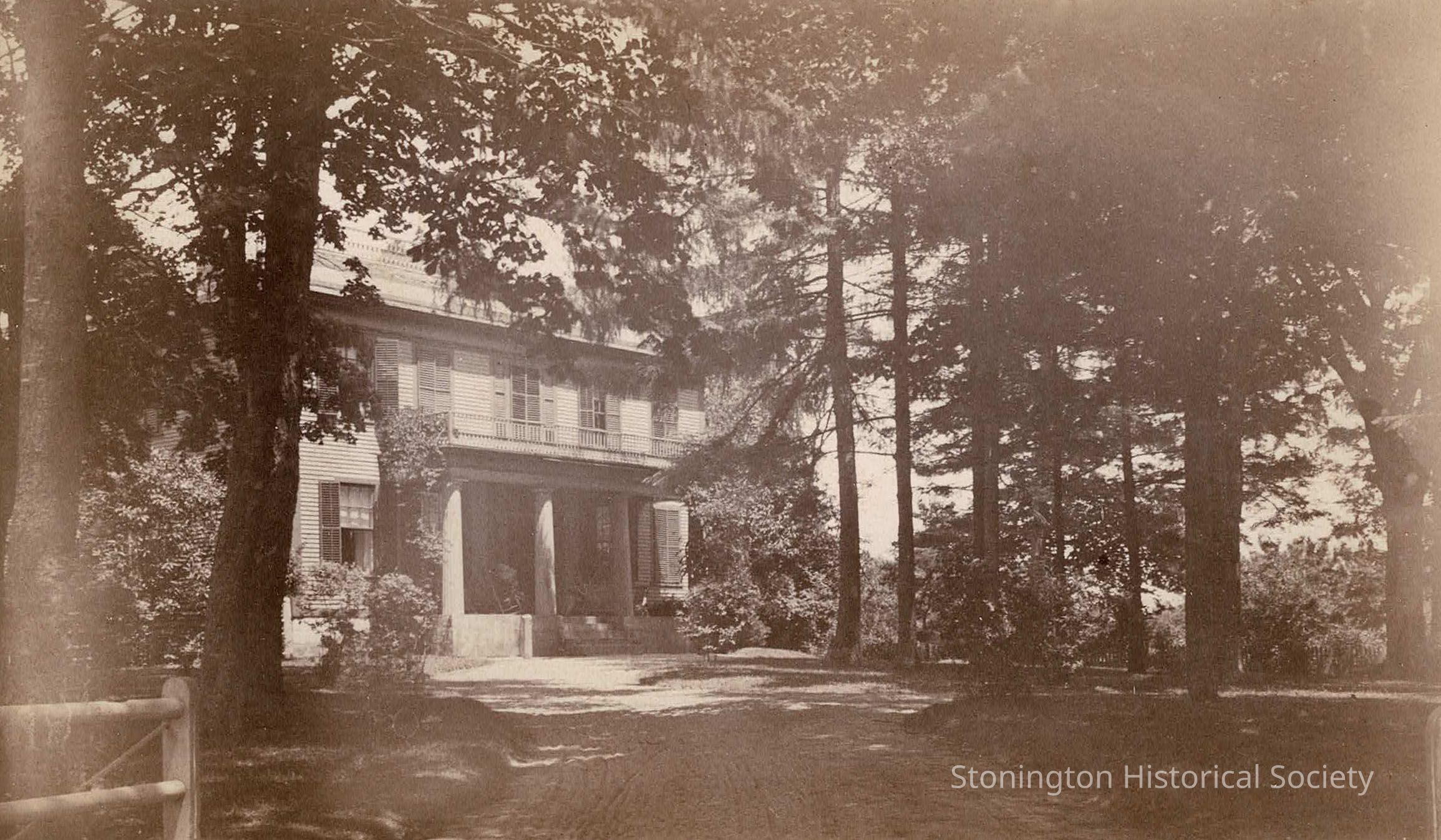 A view of the main house at Stone Acres from the driveway. This photograph was most likely taken between 1900 and 1915. Note the heavily wooded front yard that obscures sight of the house from the road.Collection