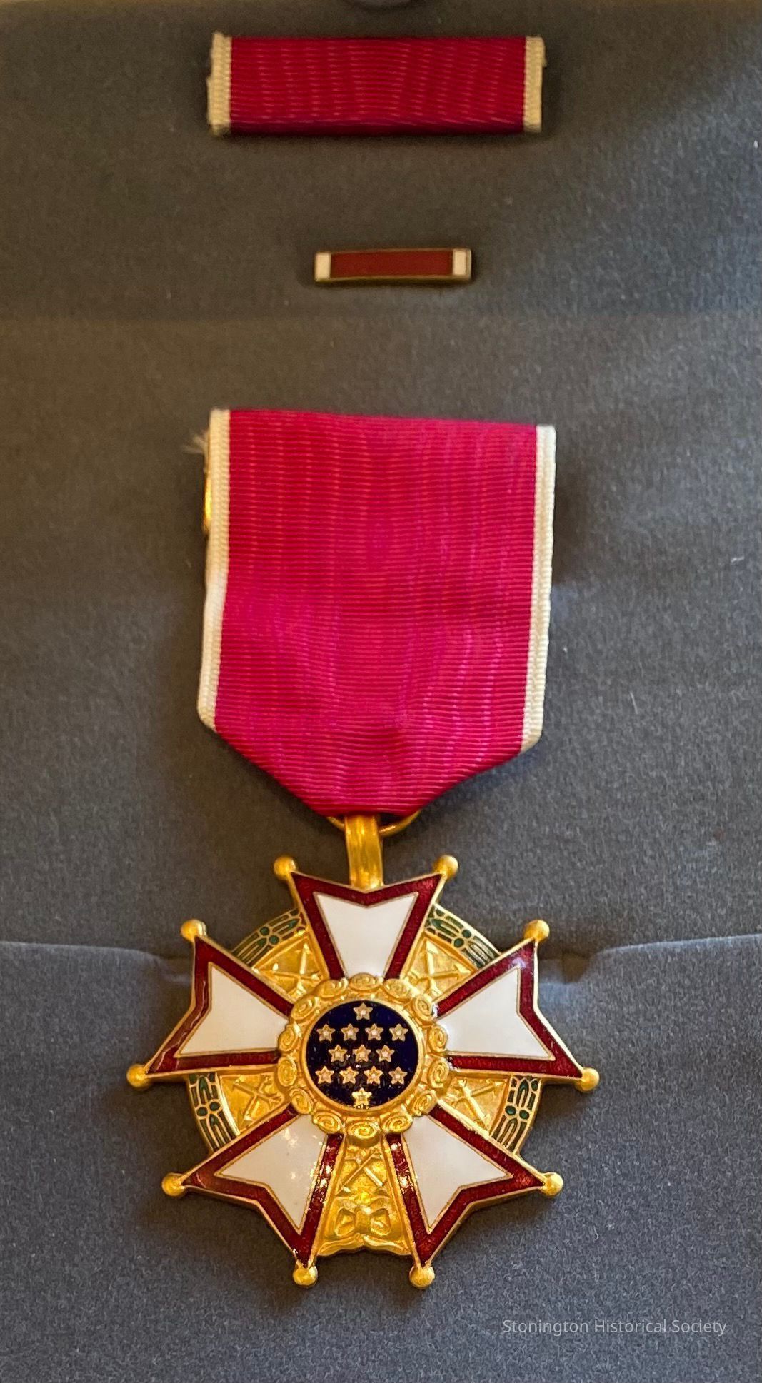 Legion of Merit Medal and service ribbon in case, awarded to Staff Sergeant Maurice La Grua for service in the Army during WWII.