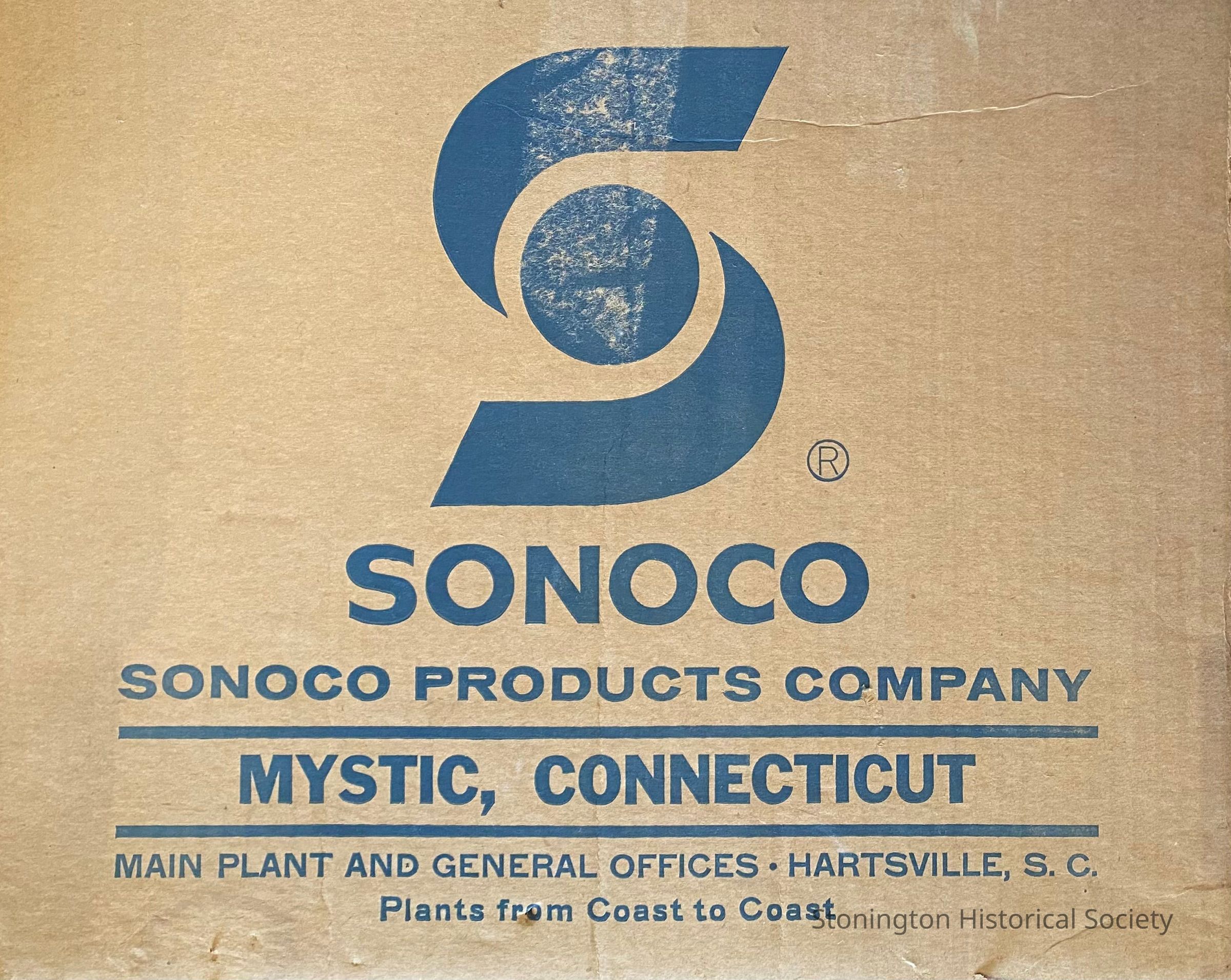2 pieces of cardboard from the Sonoco Products Co. of Mystic (Stonington).