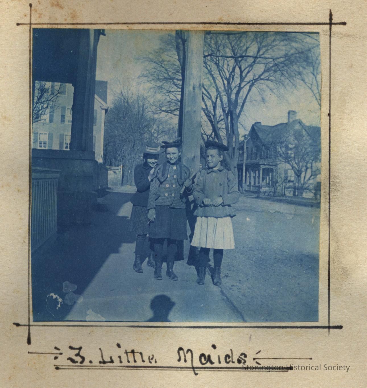 Cyanotype print of three unidentified young women