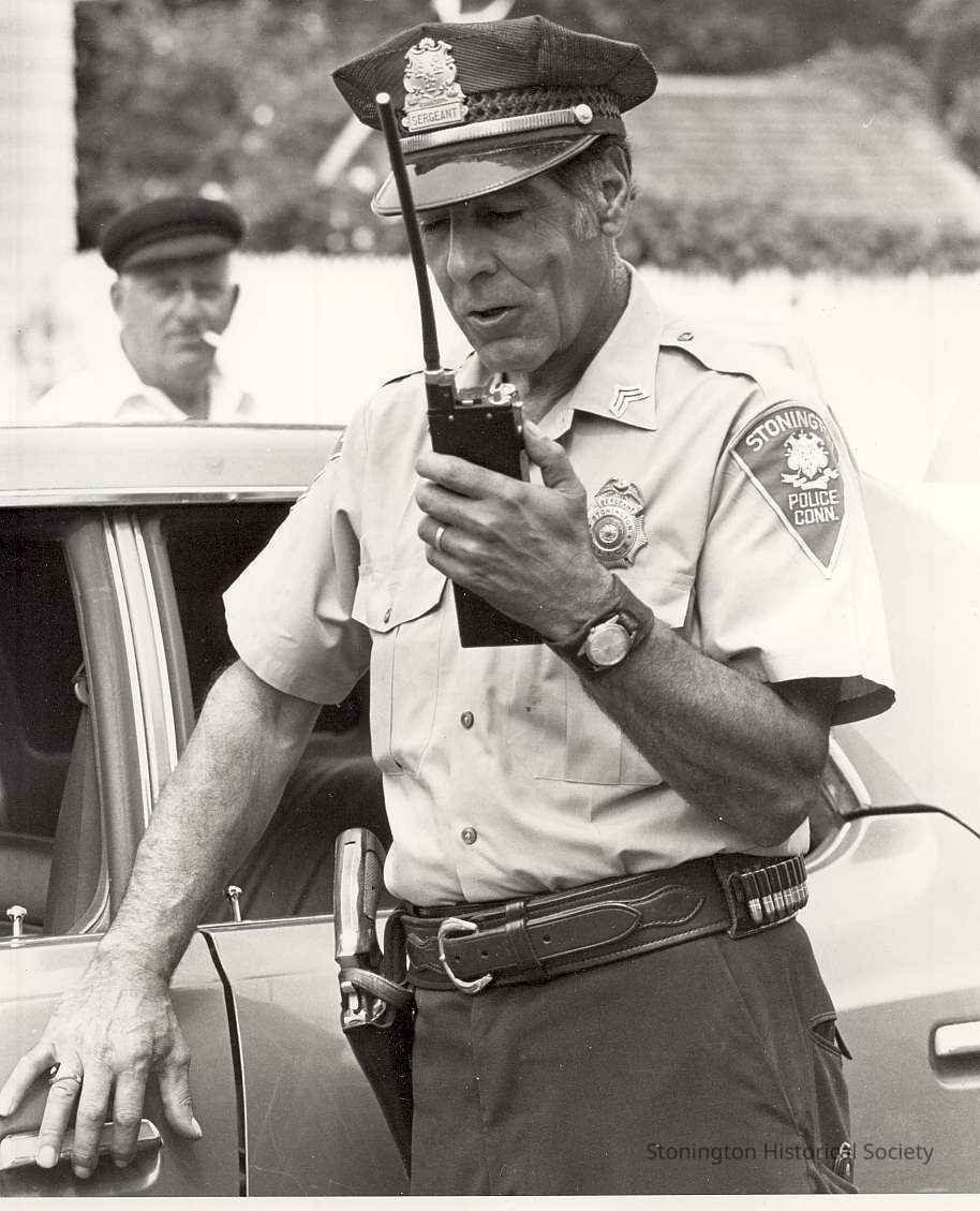 Art Pupelo, patrolman and Eli Segal, shopkeeper, in background.