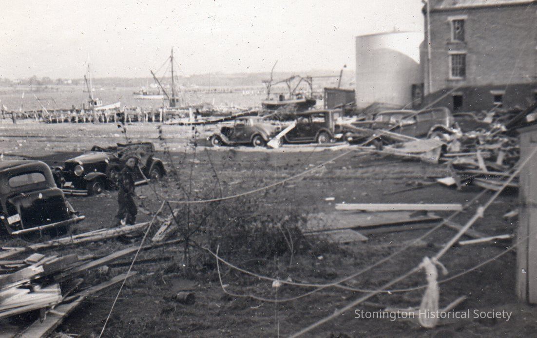 Black and white photograph of the only two boats that didn't sink or break away from the docks during the 1938 Hurricane. From photograph album of Bertha D'Amico.