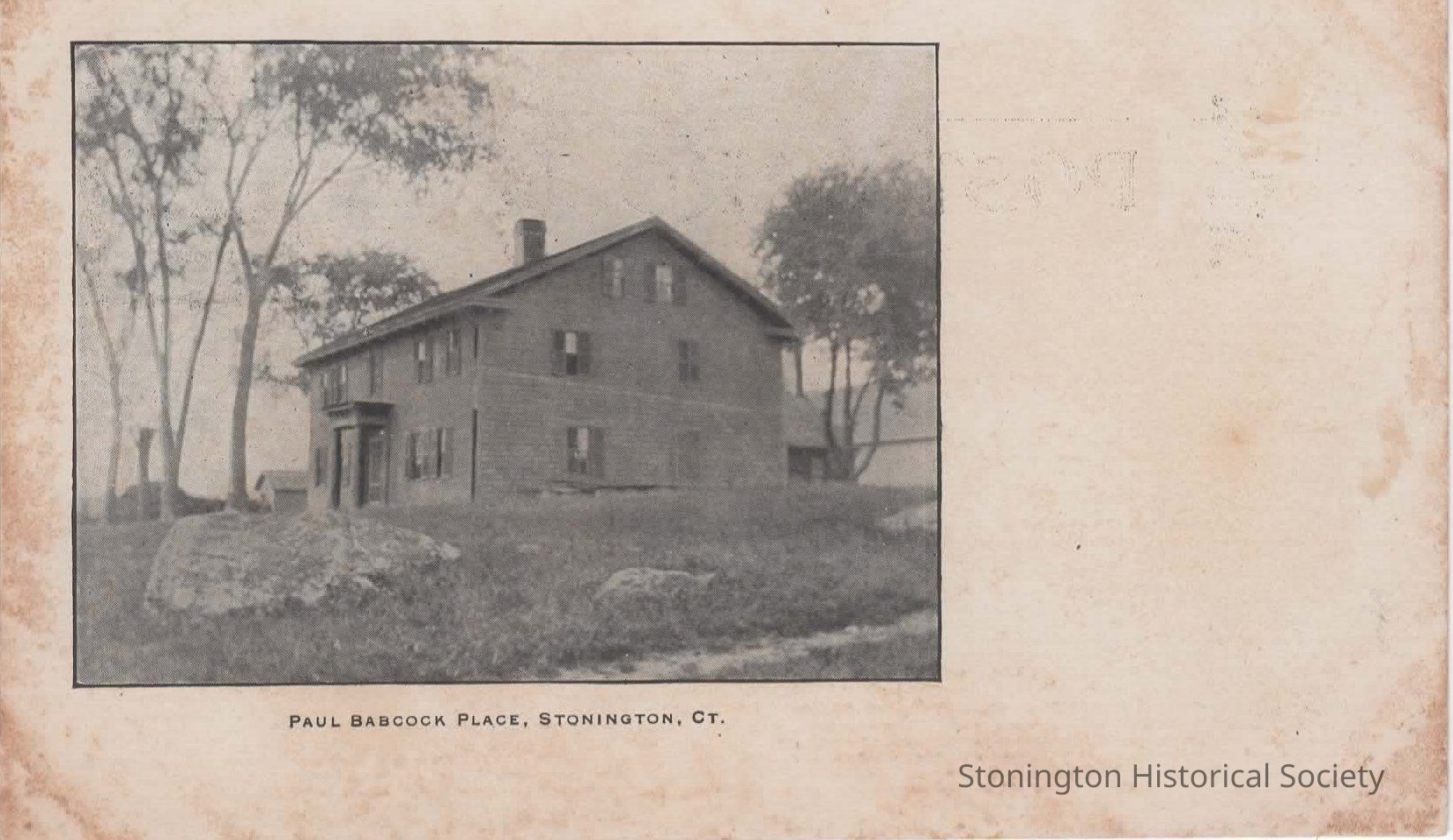 black and white photo postcard, "Paul Babcock Place, Stonington, CT"
