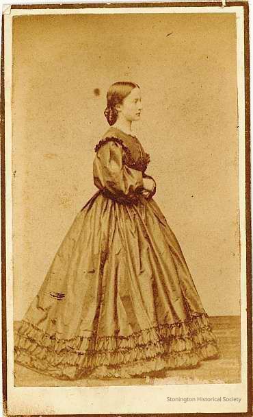 Full length side view portrait of "Aunt Lina", Evalina C. Denison (b. 1822, m. 1841), wife of Stephen D. Thatcher, daughter of Samuel F. Denison.Collection