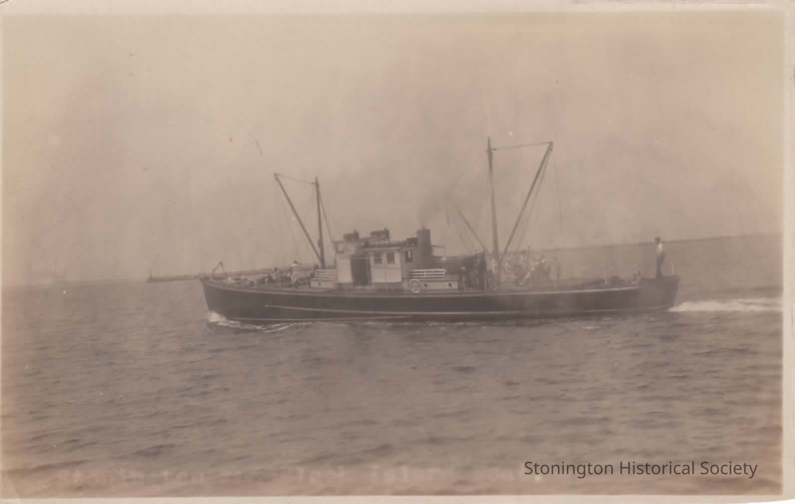 black and white photo postcard, fishing vessel, "Stonington - Block Island Boat"