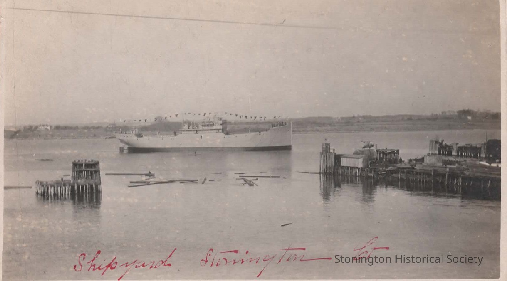 black and white photo of a Stonington shipyard, March 15, 1919.