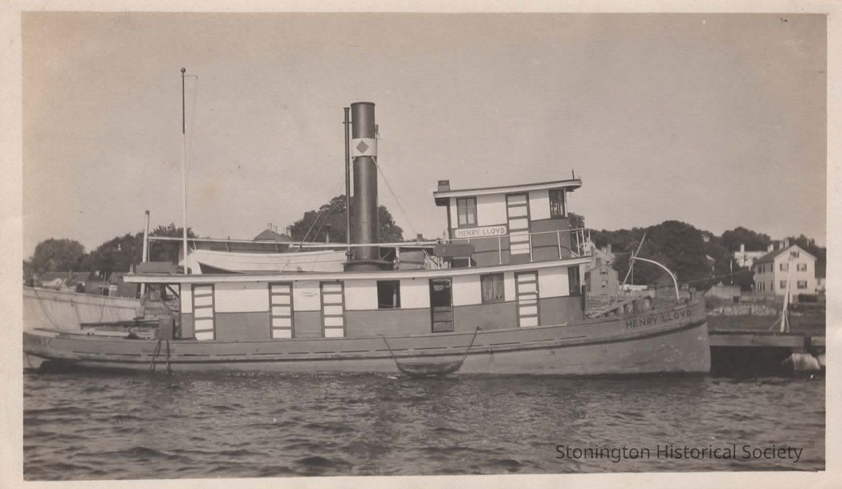 black and white photo of the HENRY LLOYD, handwritting on back reads: "Ship Yards Tug"