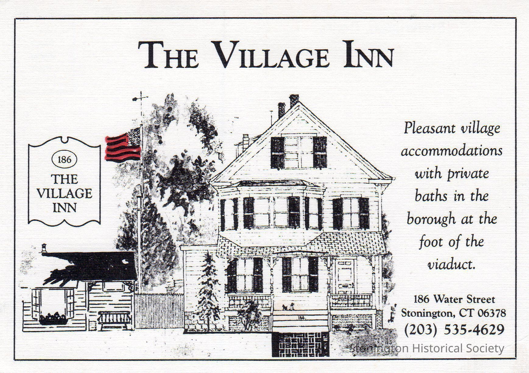 Illustrated postcard, "The Village Inn," 186 Water Street, Stonington.