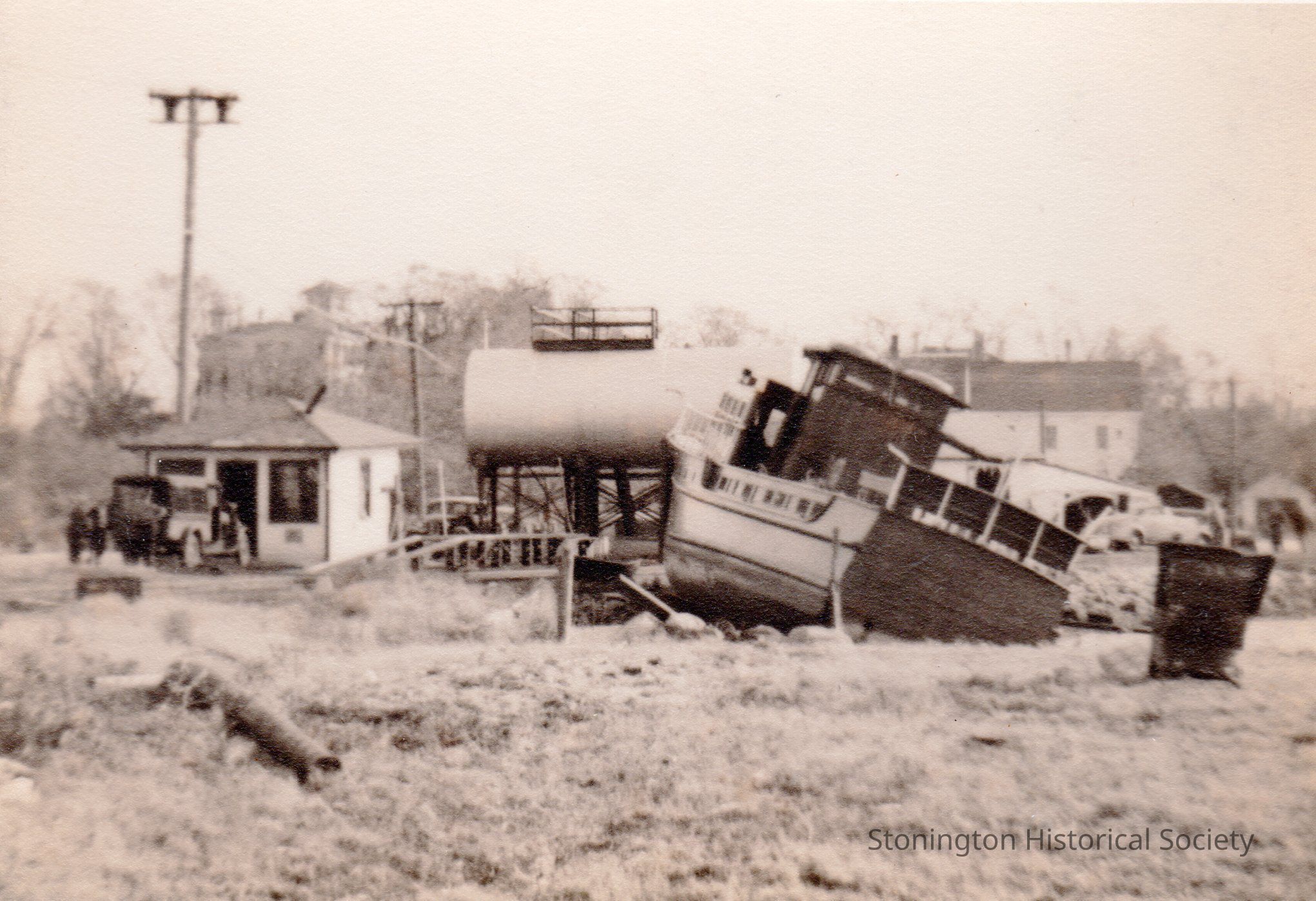 Black and white photograph, 1938 Hurricane damage, Stonington.