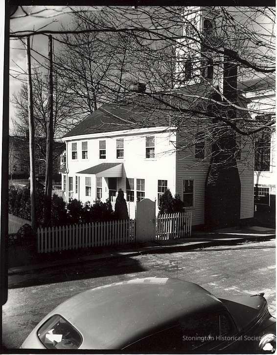 4 Cliff Street with Congregational Church in background. Automobile in foreground