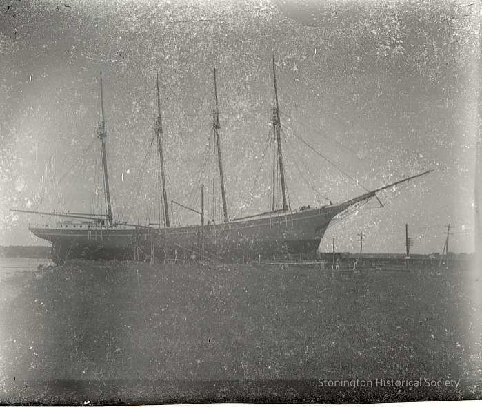 4-masted schooner at dock, Stonington CTEntry/Object ID