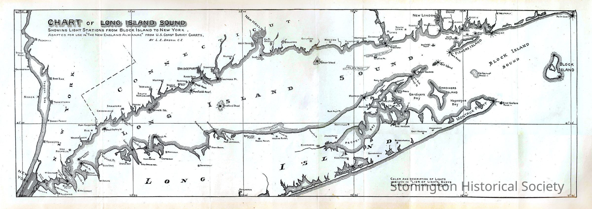 Chart of Long Island Sound showing Lightstations from Block Island to New York