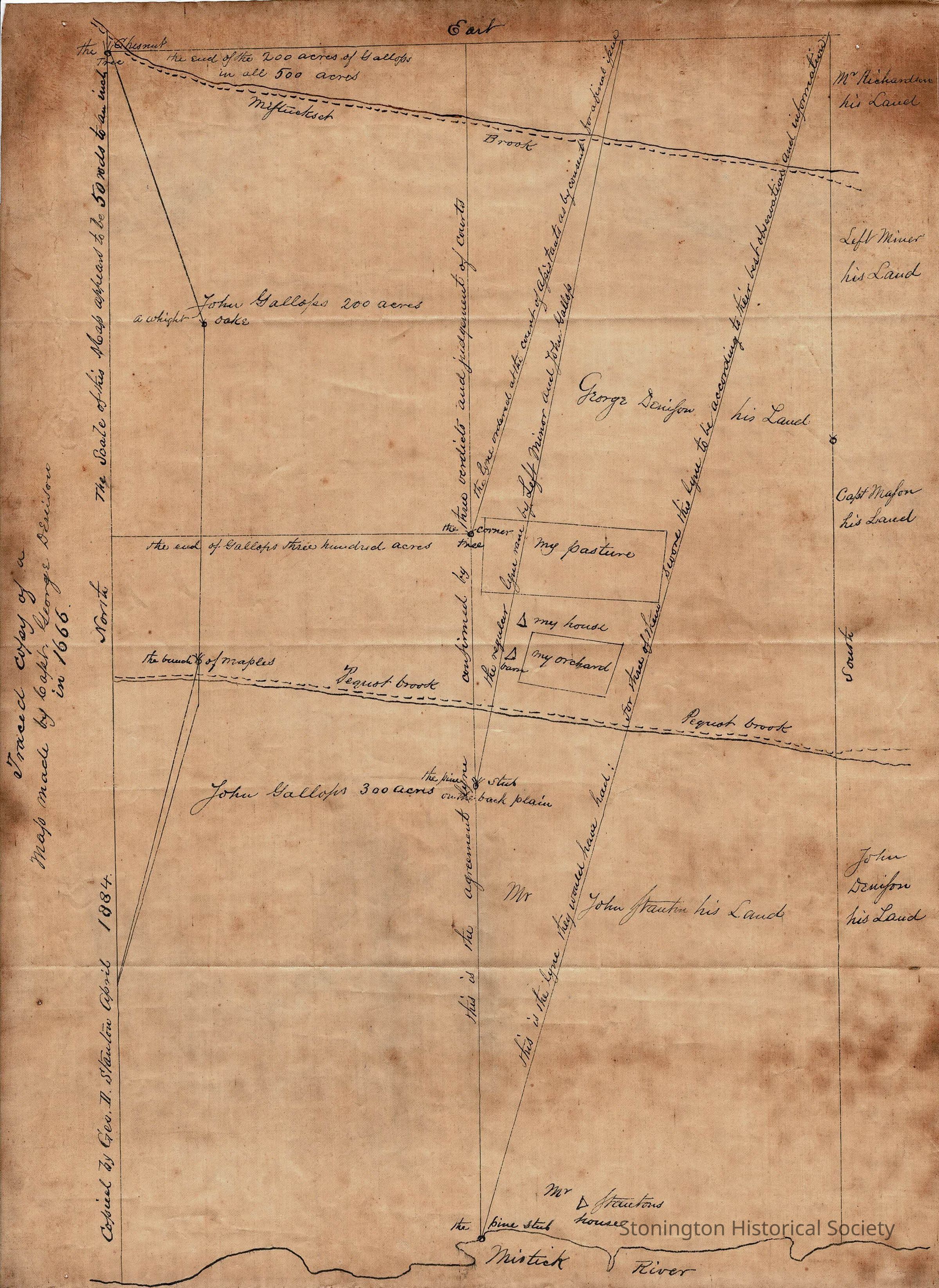 Tracing of of original map of Capt. Geo. Denison property in Stonington dated 1666 Tracing made by George Stanton in 1884.Collection