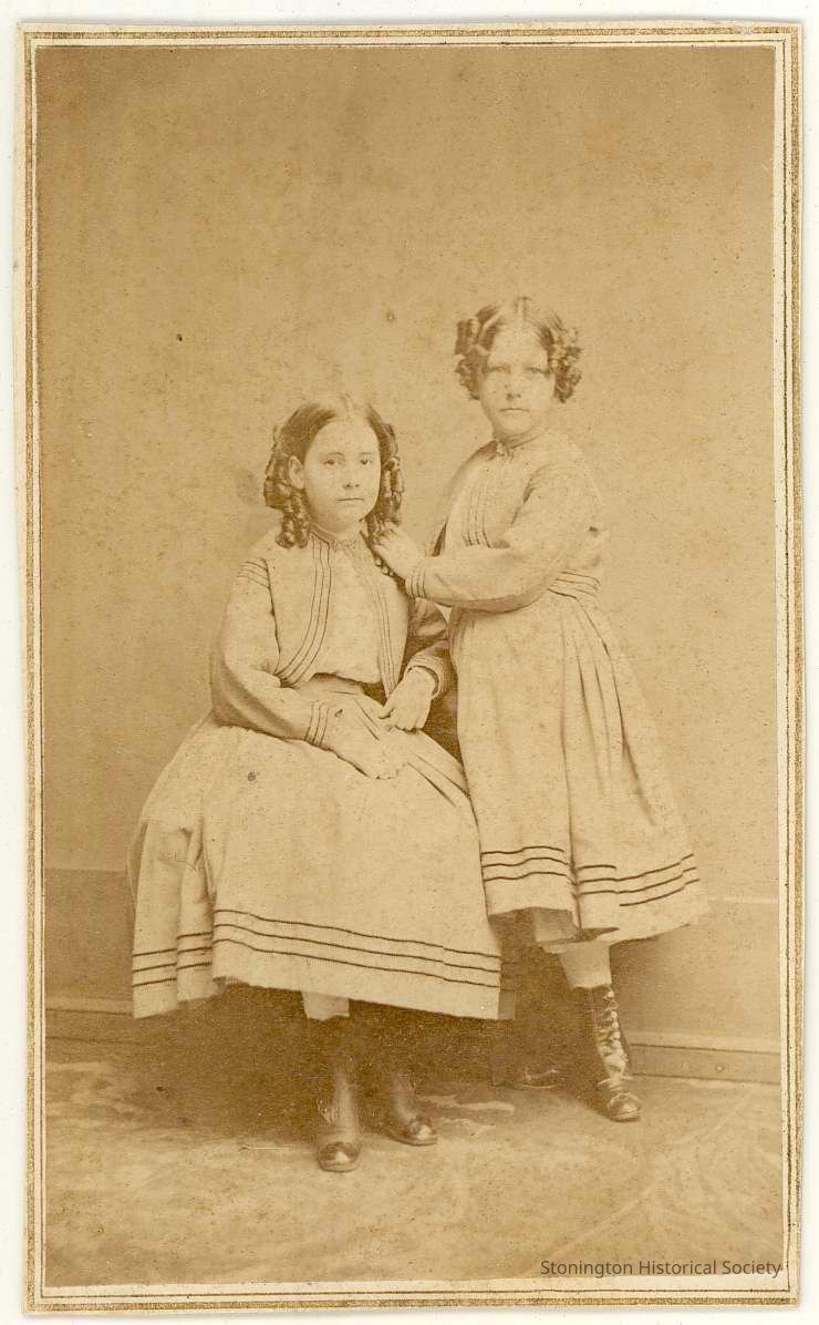 Dual portrait full length, sisters Ellen & Clara Douglass