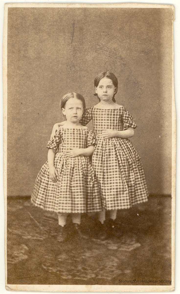 Standing full length photo of Ellen & Clara Douglass in taffeta dressesCollection