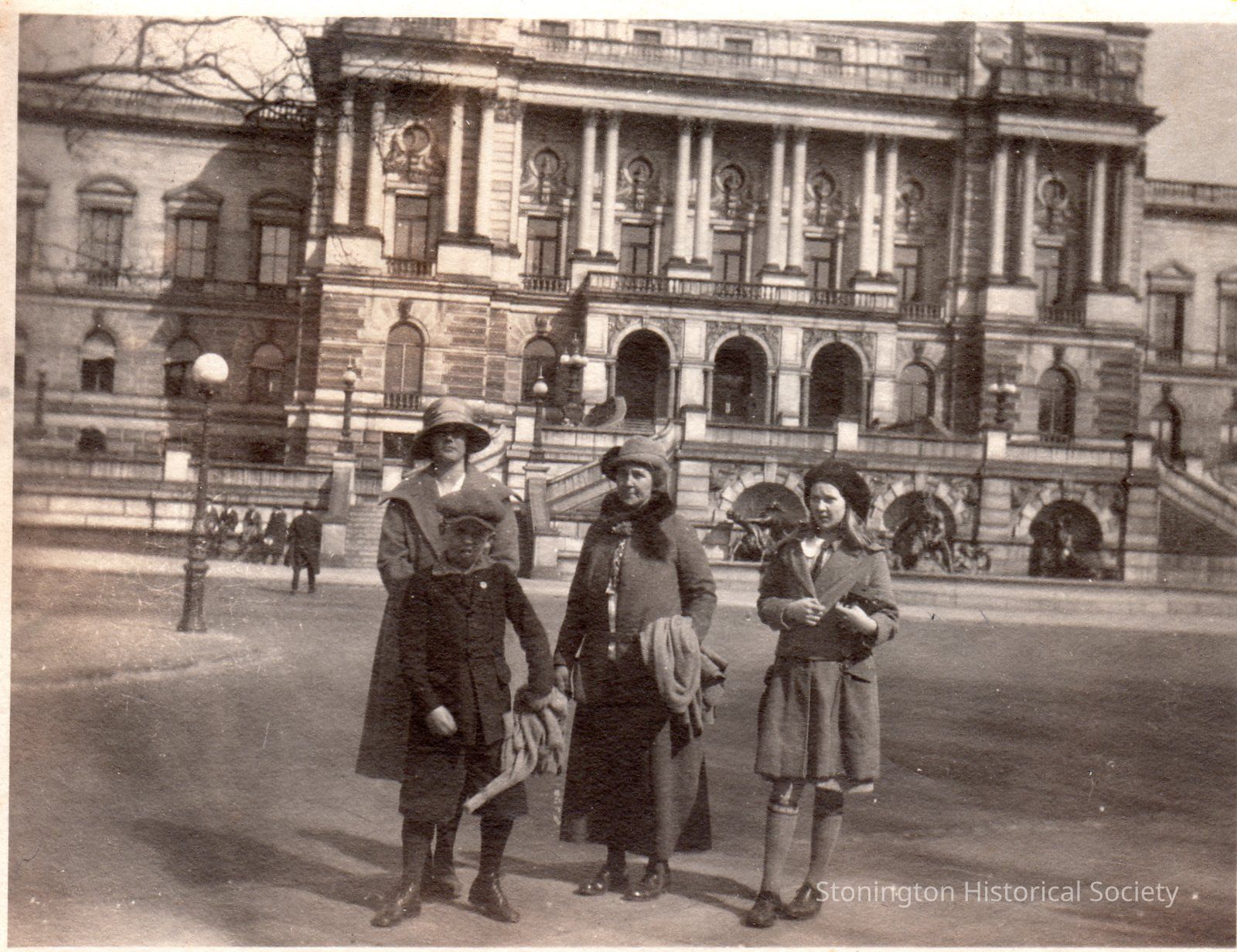 black and white photograph, Helen Adams Paffard and her children Elizabeth, Jane and Frederic Jr. "Freddy" Paffard in Washington D.C., 1924