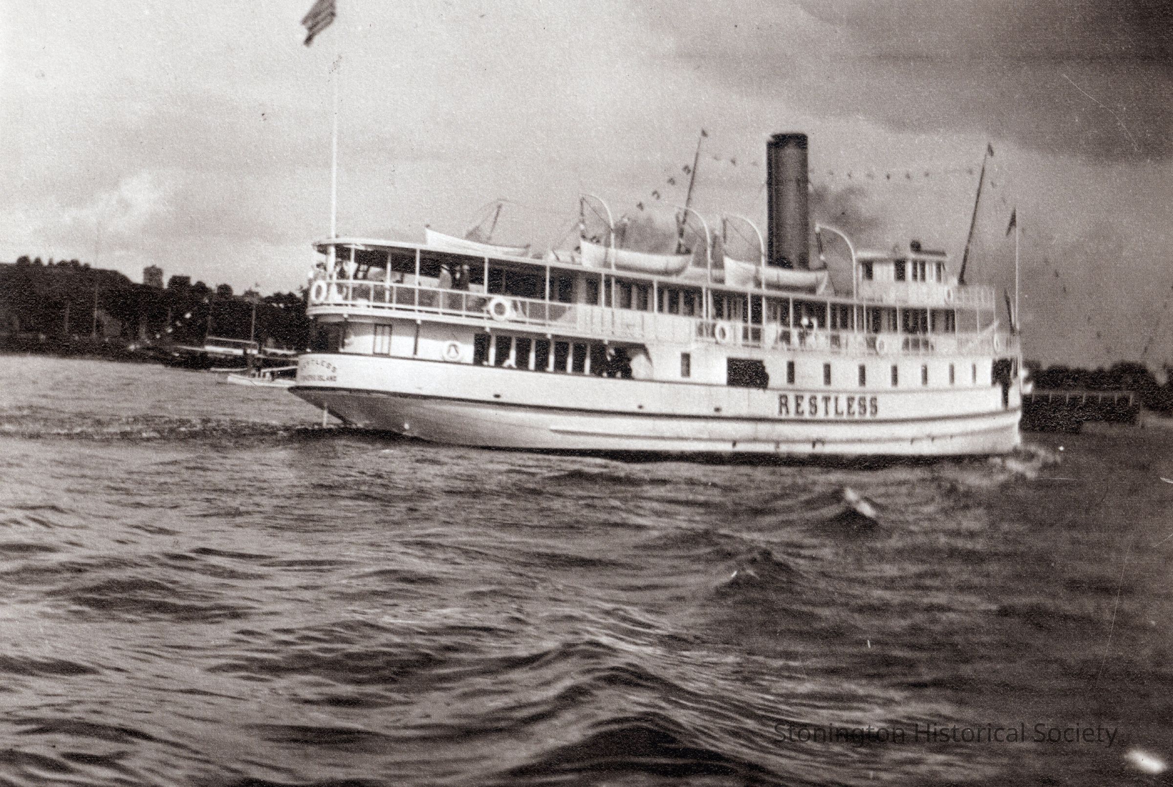 Black and white copy print, steamer RESTLESS. Given to the Society by Harry Northup before his death.