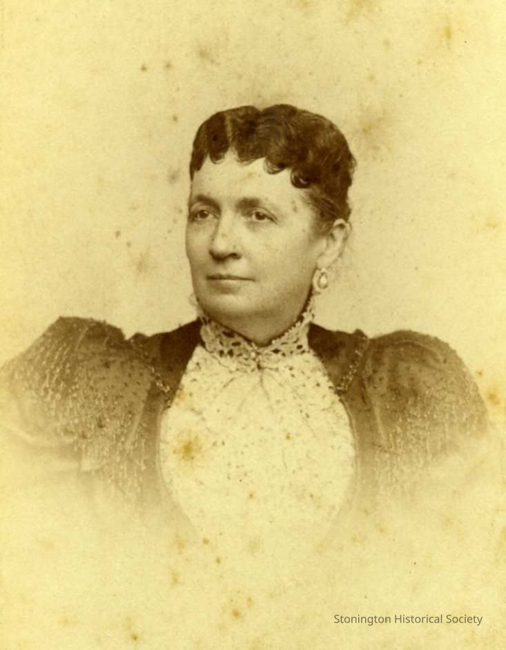A small portrait photograph of Georgia Babcock Williams, taken around 1890. The image has been cut previously. Mrs. Williams is seated, wearing a dark colored dress with a white, high necked blouse. Georgia Palmer Babcock (1837-1910) married Charles Phelps Williams in 1861.Collection