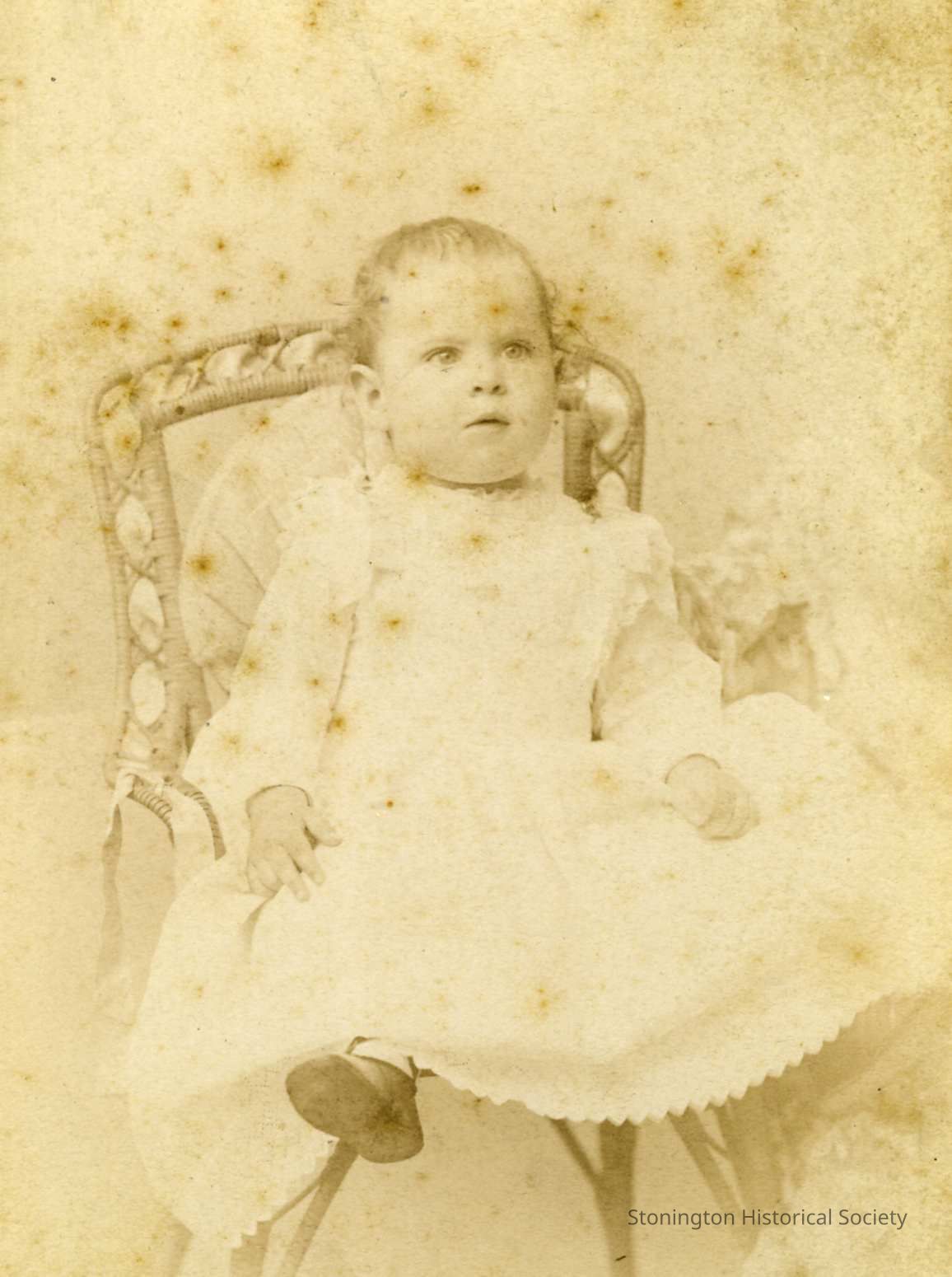 A portrait photograph of an infant Constance Whitney Warren (1888-1948), the daughter of Daisy Williams and George Henry Warren II. Constance was the grandchild of Charles Phelps Williams and his wife, Georgia P. Babcock. This photograph has the date January 1889 written on the reverse.Collection