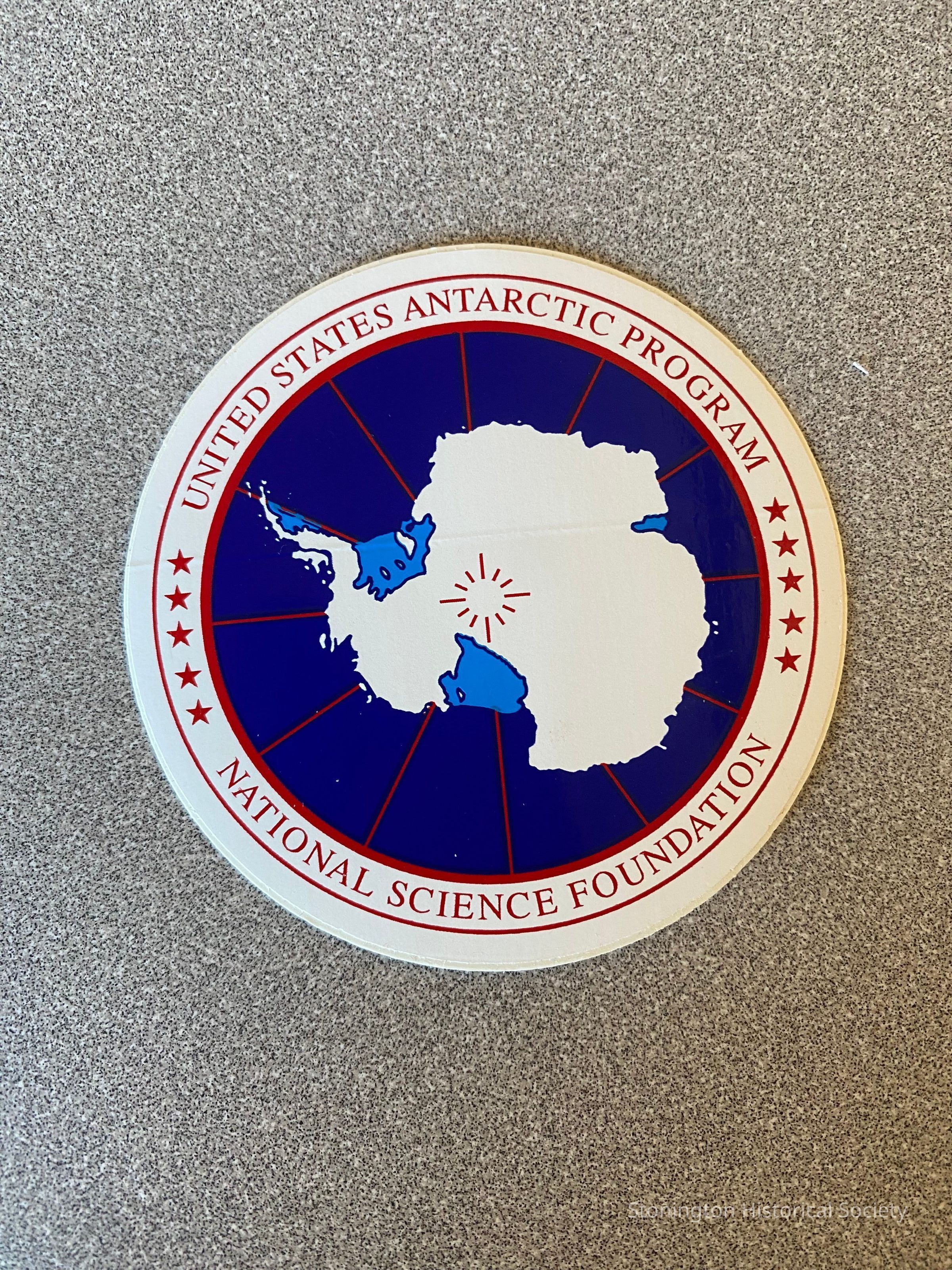 Round sticker, United States Antarctic Program and National Science Foundation.