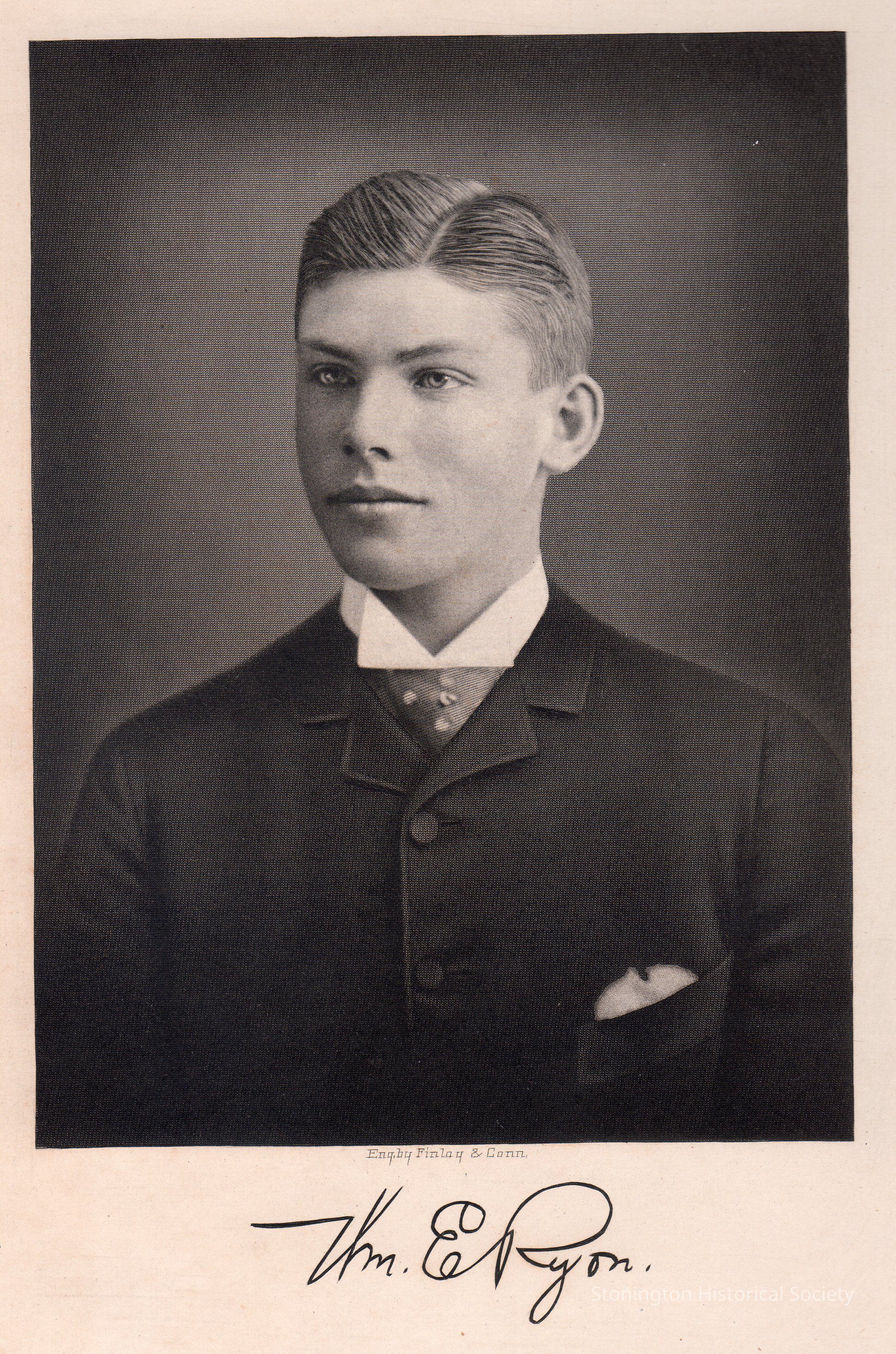 Print, engraving of William E. Ryon (1869-1922) who was a tax collector and ran a grain business and livery service in Stonington. with original glass plate.