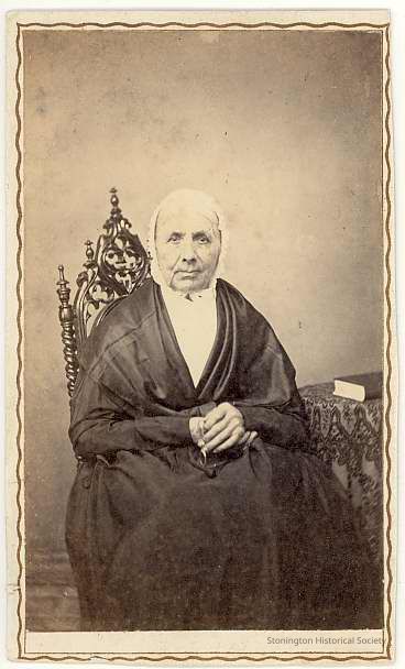 Unidentified old woman, 3/4 portrait, seated by table with book on it, holding eye glasses Photo by M B Yarnall, Phoenixville PA