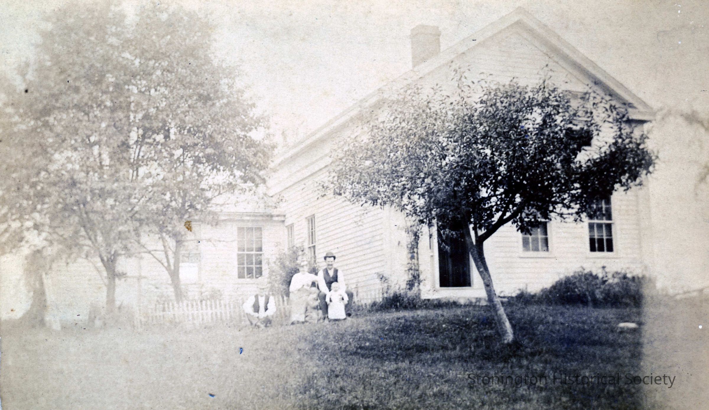 Back of the photograph reads: This picture was taken about 1884 - 85 when my mother and father lived there. This house is a little way above the Old Denison Homestead on the same side of the road and after my folks lived there, Mr. and Mrs. Calvin Wilcox lived there for quite a number of years. 1948 a Mr. Schmitz lives there - Charles F. Noyes, March 14, 1948Collection