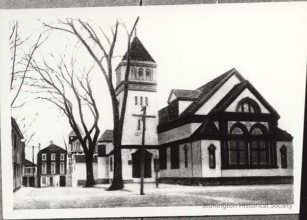 50 Main Street, Baptist Church, built 1890, looking down Union Street towards Water Street