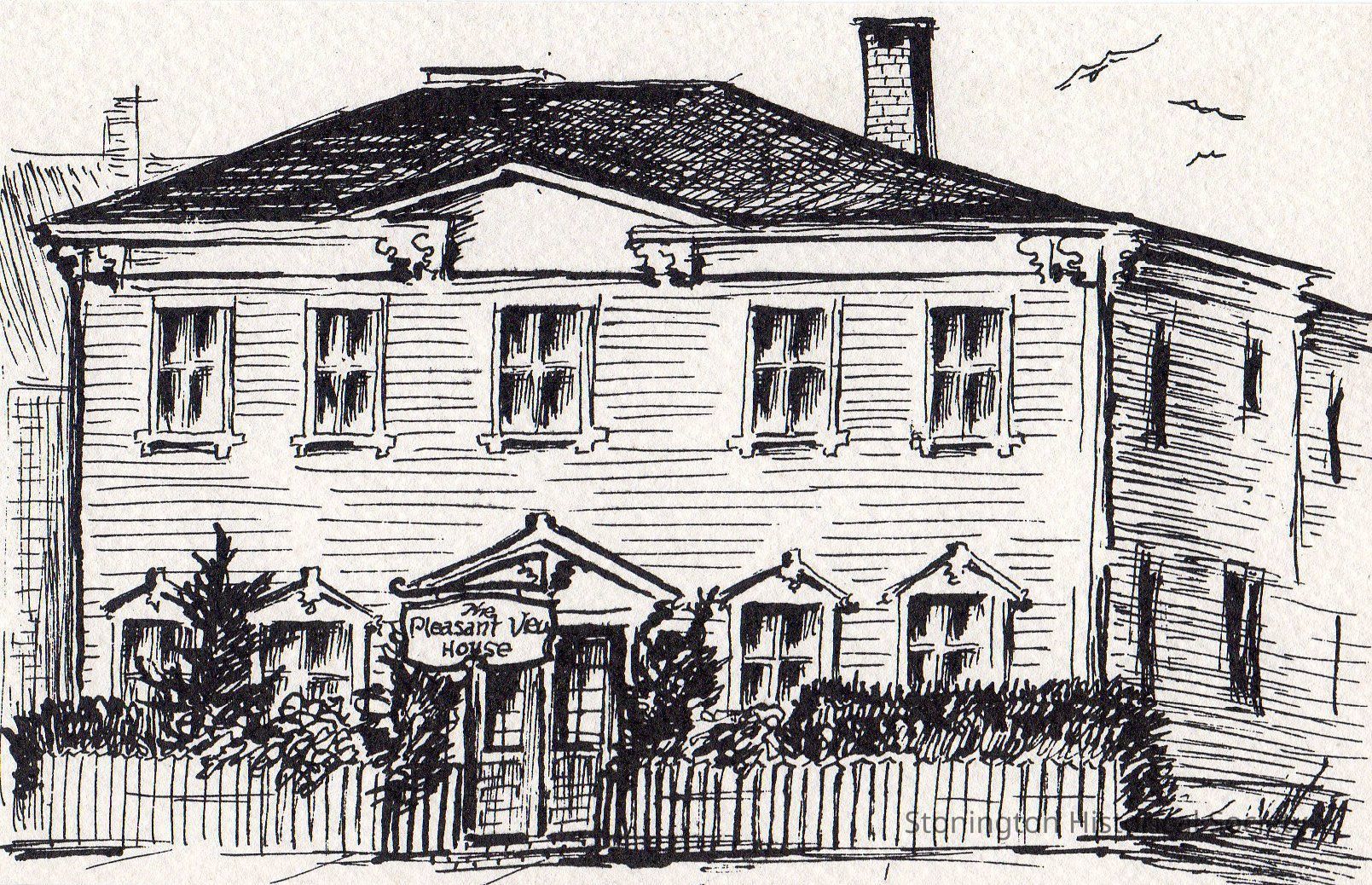 Collection of holiday cards and postcards featuring sketches of Stonington, published by the Stonington Publishing Co., (possibly produced for the Pleasant View Guest House at 92 Water Street in Stonington Borough),c. 1967 - 1973. Sketches done by R. L. MacFarlane and other artists. Also includes a calling card/business card for Mr. and Mrs. Edwin D'Amico, Pleasant View House.
