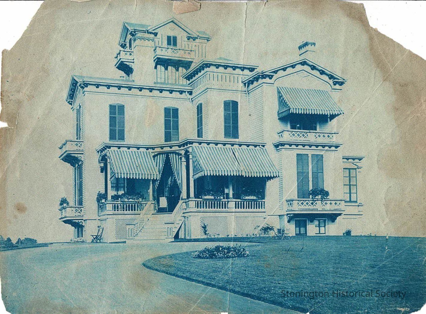 The reverse of this photograph refers to it as the Eugene Atwood House, placing the photograph between 1888 and 1926. This is likely closer to 1900, in comparison to 2025.212.7 which shows a large growth of ivy from the plantings here.Collection