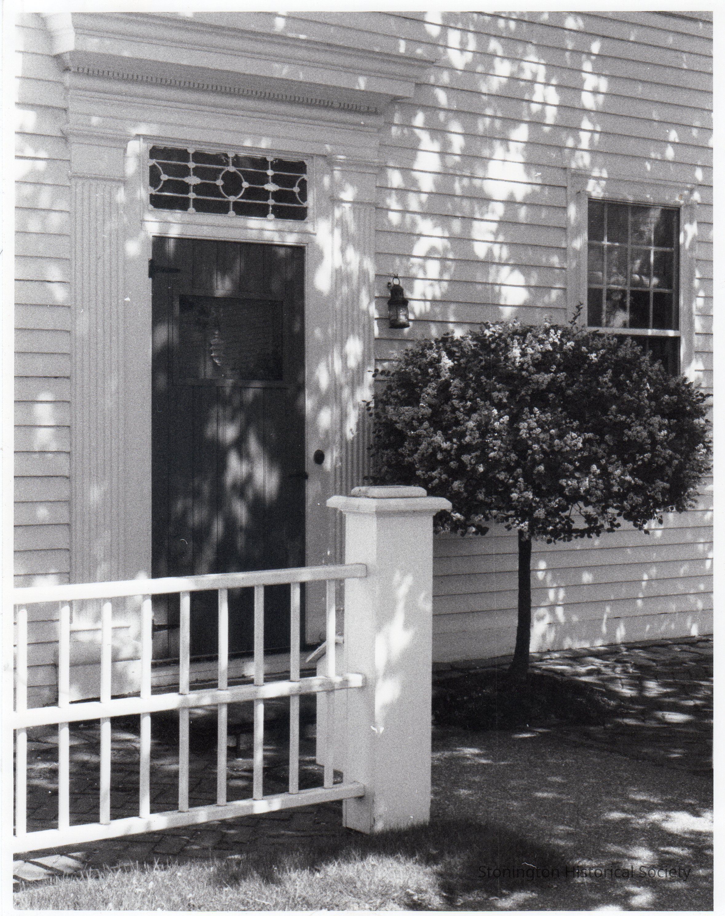 black and white photograph of the front door to 53 Main Street in Stonington Borough, photographed by Mary Thacher.