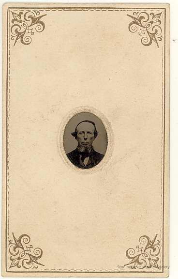1 x 3/4 tintype in small oval in 3 3/4 x 2 1/4 card. Head photo of unidentified older man with beardCollection